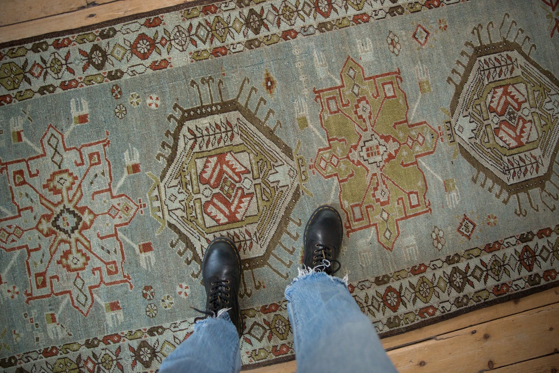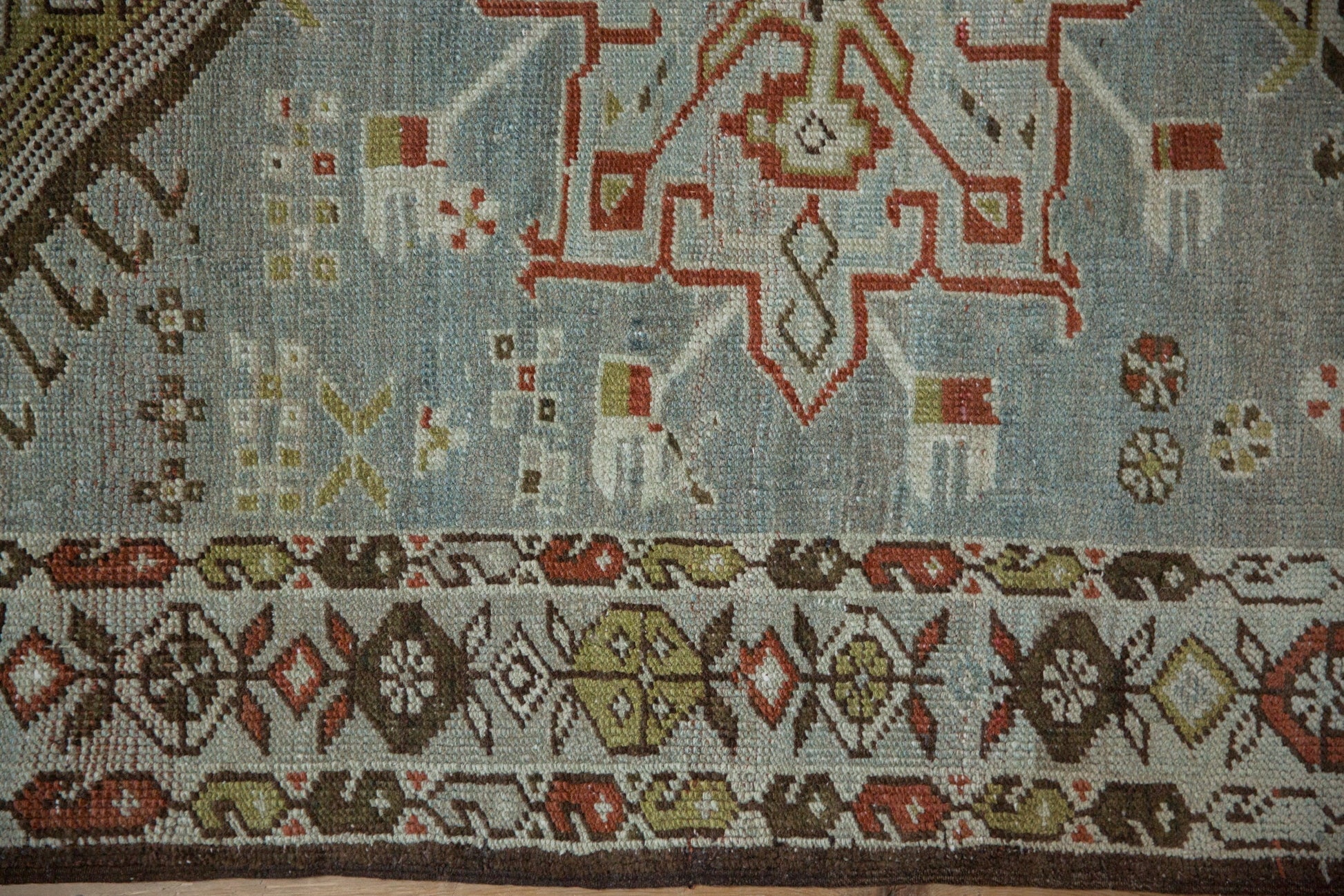 Hand-Loomed Authenticity: True to its village origins, the rug displays a slight natural contour to its shape. This organic variation is a hallmark of authentic hand-knotted textiles of this age and size and falls within normal margins for the type.