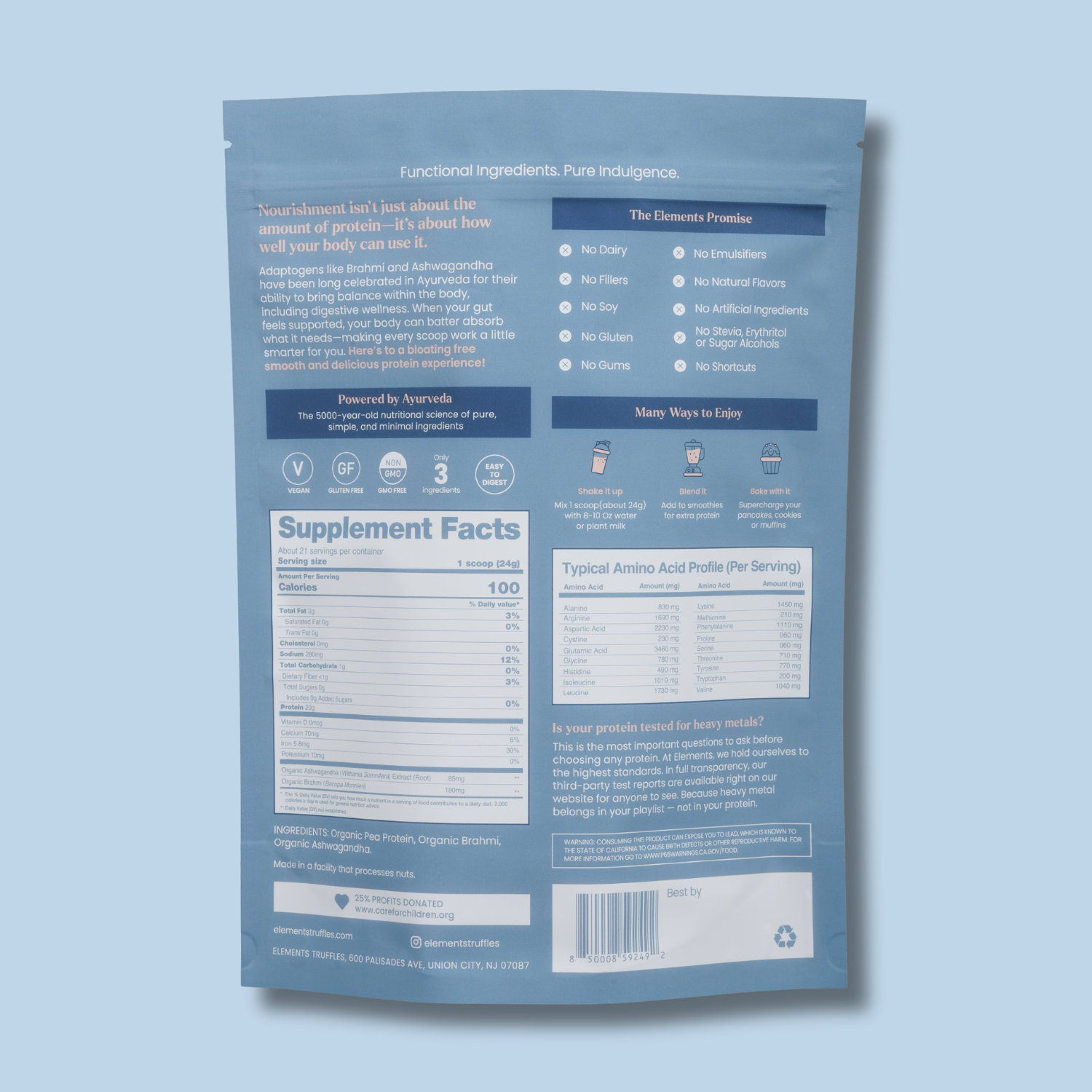 Strengthen your body with a clean, high-performance protein powder rooted in Ayurveda—the ancient "Science of Life" dedicated to balancing mind, body, and spirit. This unsweetened blend offers the ultimate versatility, featuring 20g of full-profile protein from organic yellow peas. Completely free of fillers, gums, sweeteners, or artificial additives, it provides a pure foundation for your daily wellness ritual.