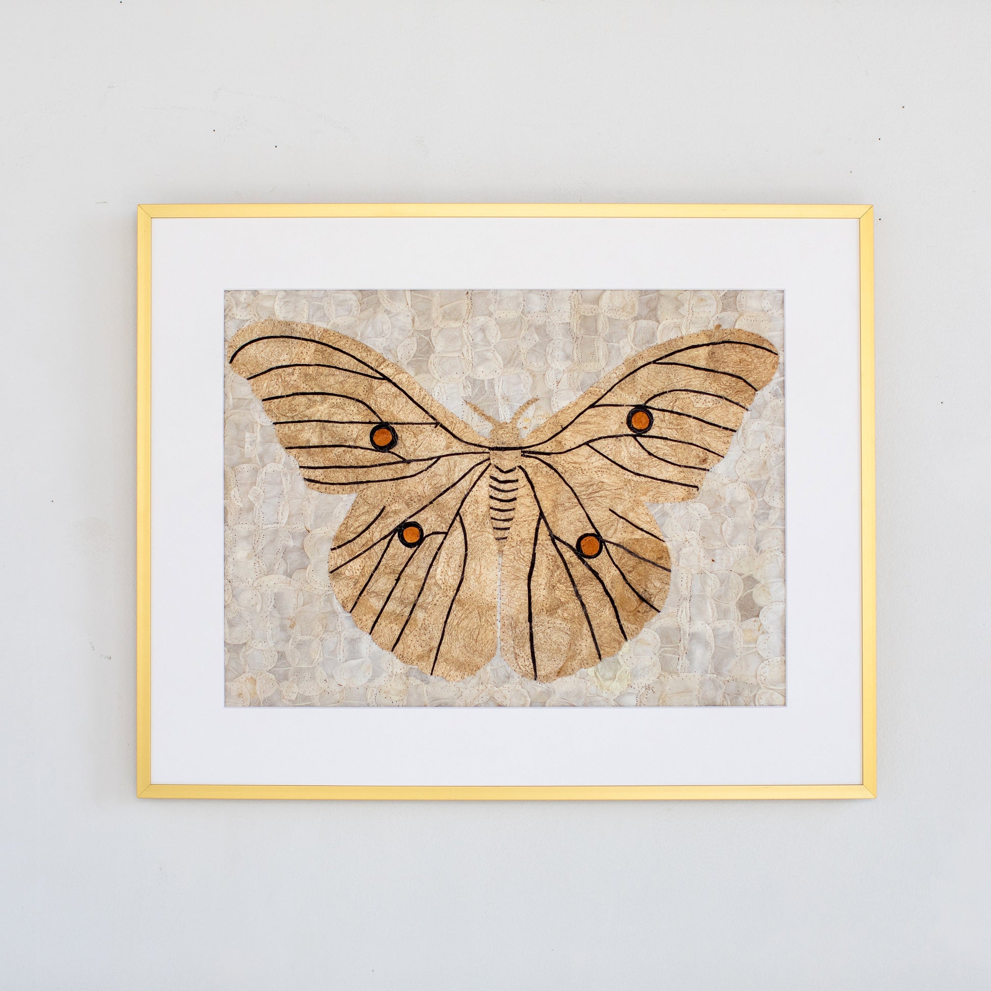 This artwork is entirely hand-crafted by SEPALIM, a poverty alleviation organization in northeastern Madagascar. By creating sustainable livelihoods through silk production, we directly protect the native habitats of these incredible moths. As a Fair Trade Certified product, 100% of the profits are returned to the team in Madagascar to invest in local leadership and community ownership.