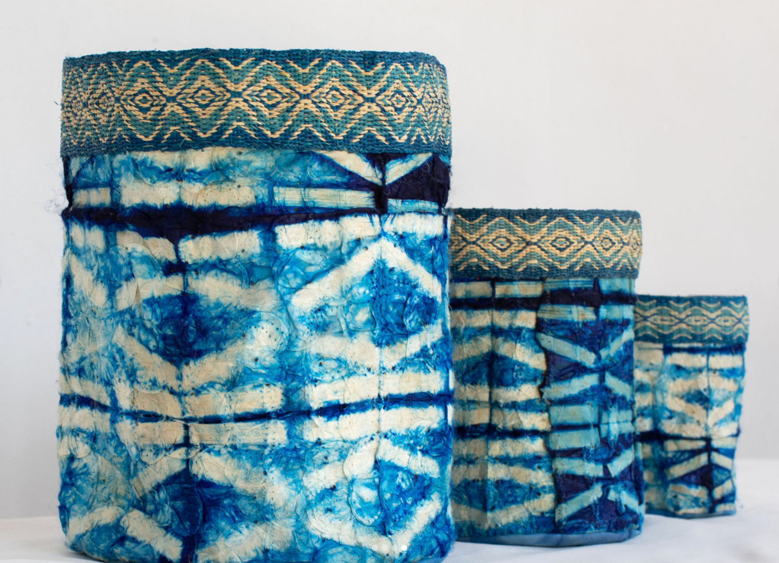 Wild Silk Shibori Baskets – Stick Pattern – Sapphire & Natural