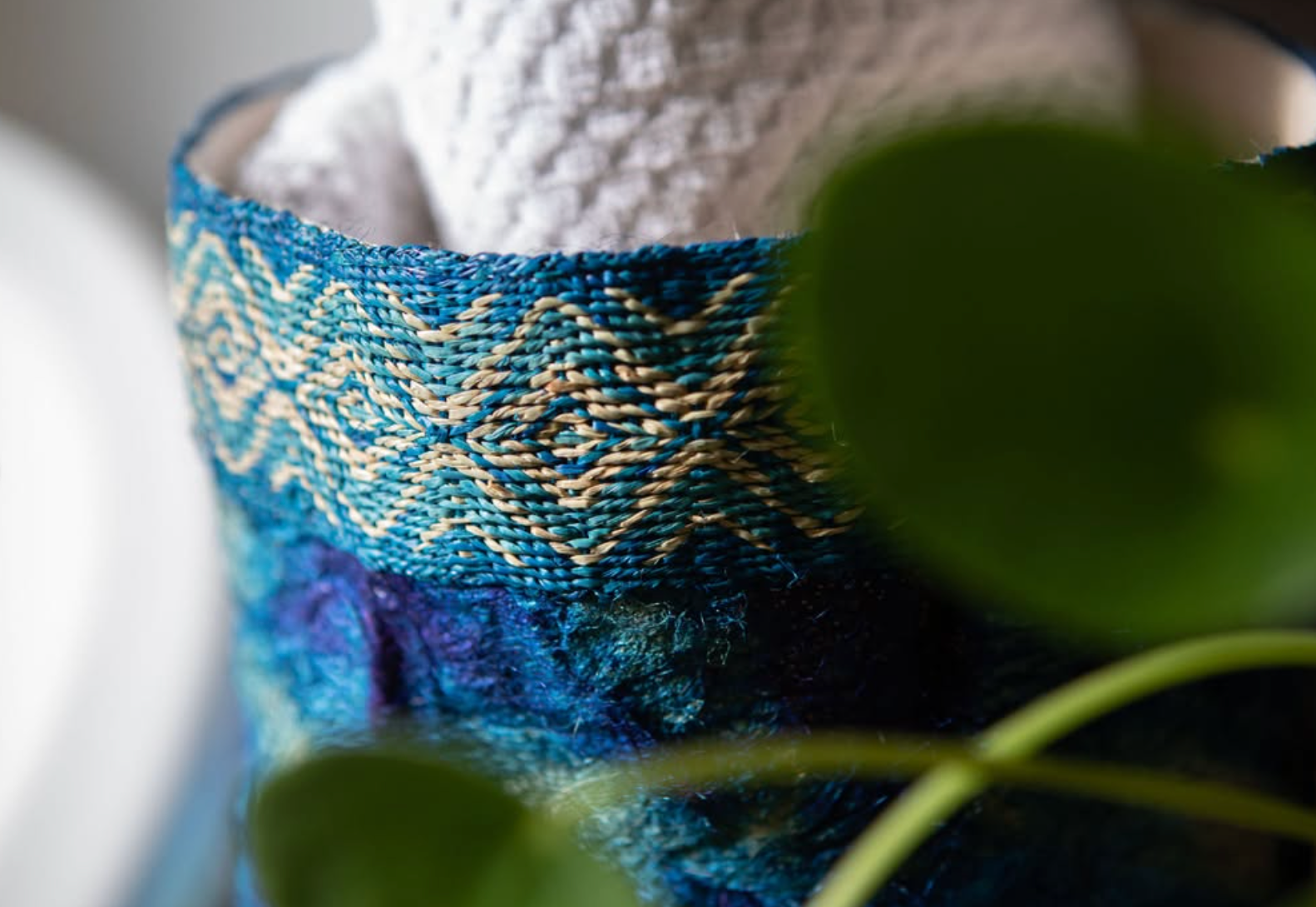 Wild Silk Shibori Basket | Stick Pattern - Sapphire & Natural